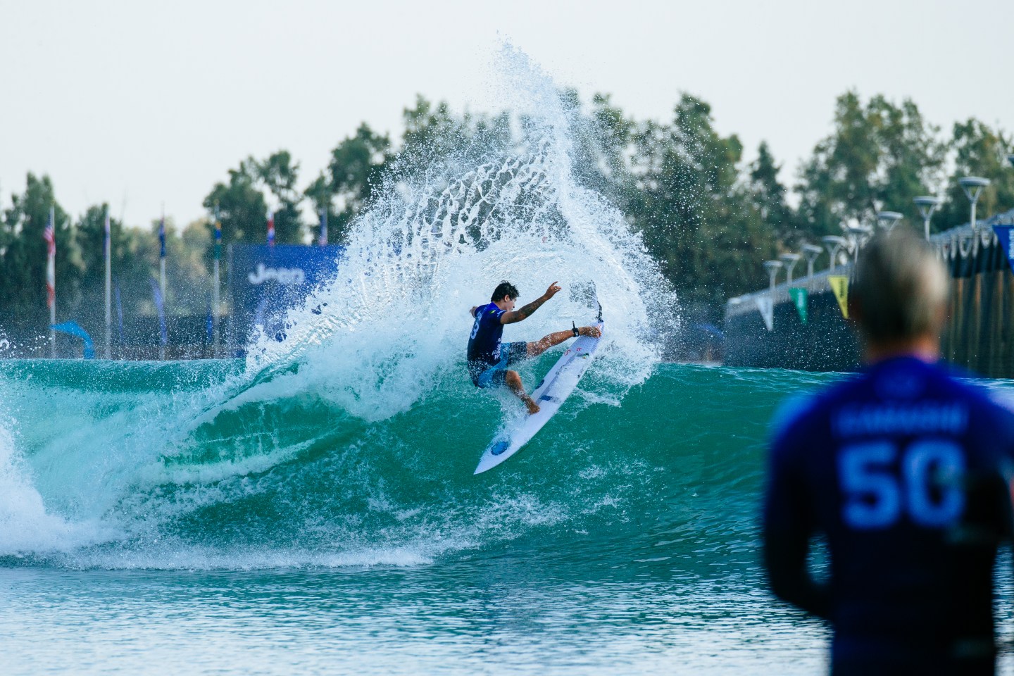 LEMOORE, CA, UNITED STATES – JUNE 18: Miguel Pupo of Brazil surfing in Heat 1 of the Qualifying Round of the Surf Ranch Pro presented by Adobe on JUNE 18, 2021 in Lemoore, CA, United States. (Photo by Jackson Van Kerk/World Surf League via Getty Images)